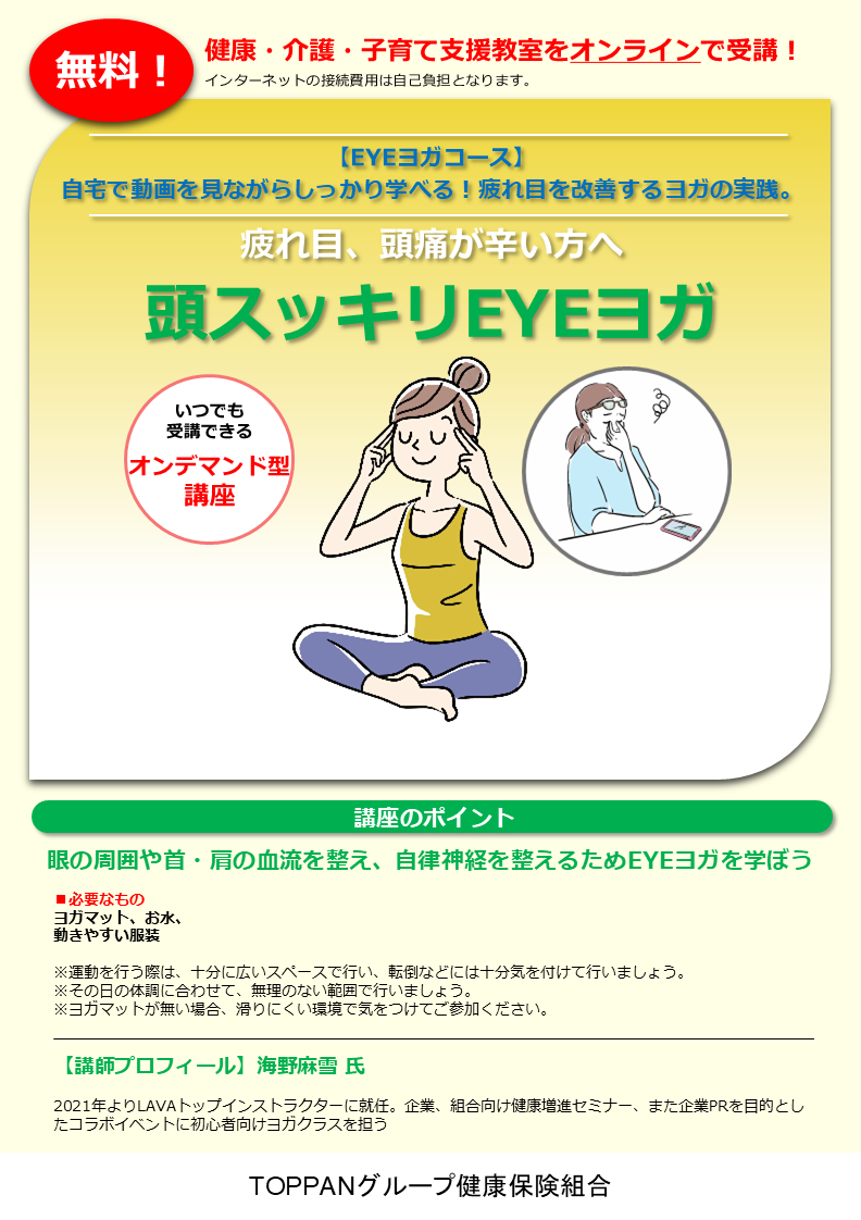 自宅で動画を見ながらしっかり学べる!疲れ目を改善するヨガの実践。