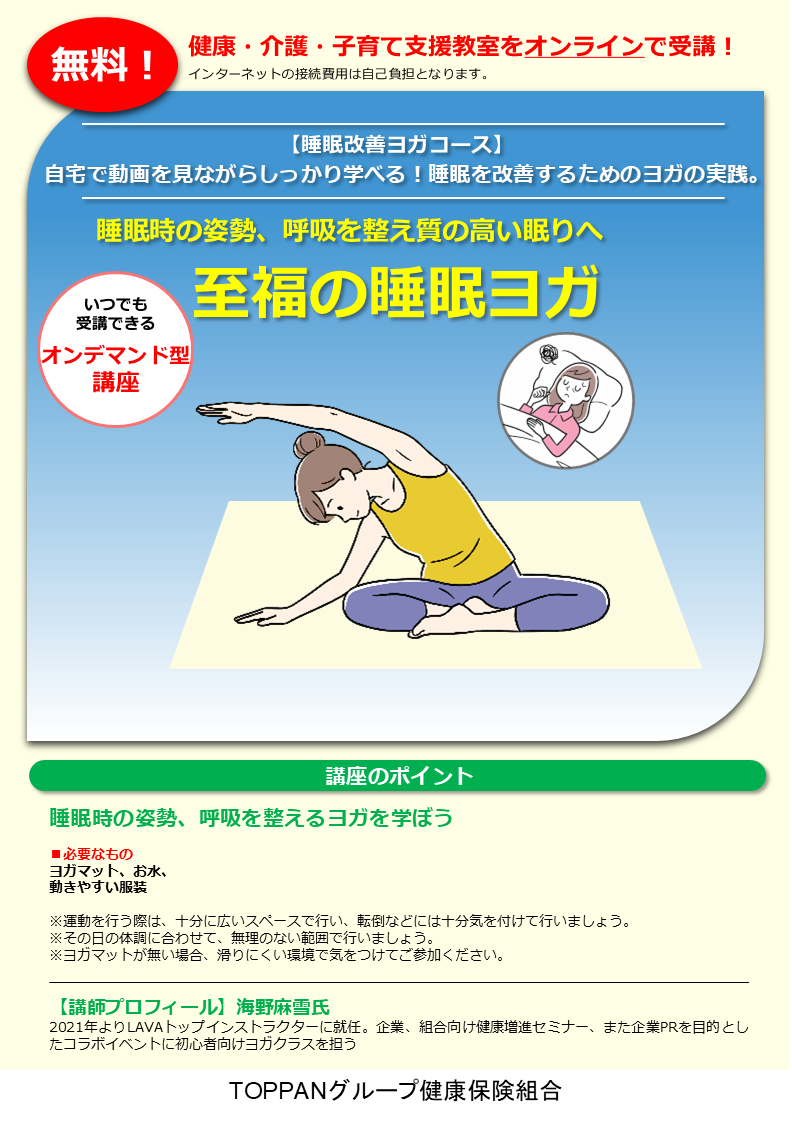 自宅で動画を見ながらしっかり学べる!睡眠を改善するためのヨガの実践。
